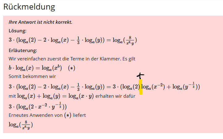 Die Angaben bei der Rückmeldung zur nicht korrekten Lösung unterscheiden sich von den Angaben bei der Rückmeldung zur korrekten Lösung.