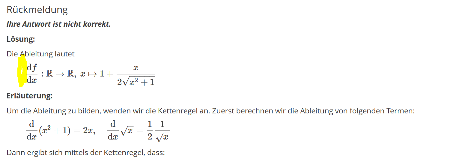 Dies ist sowohl in der Rückmeldung zur korrekten Antwort als auch zur falschen Antwort der Fall.